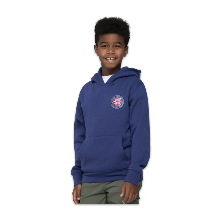 La felpa da ragazzo Outer Ringed Dot Hood è realizzata con un morbido cotone ed una vestibilità regular ideale per tutti i giorni, sul lato cuore e sul retro la stampa del logo Santa Cruz rivisitato.