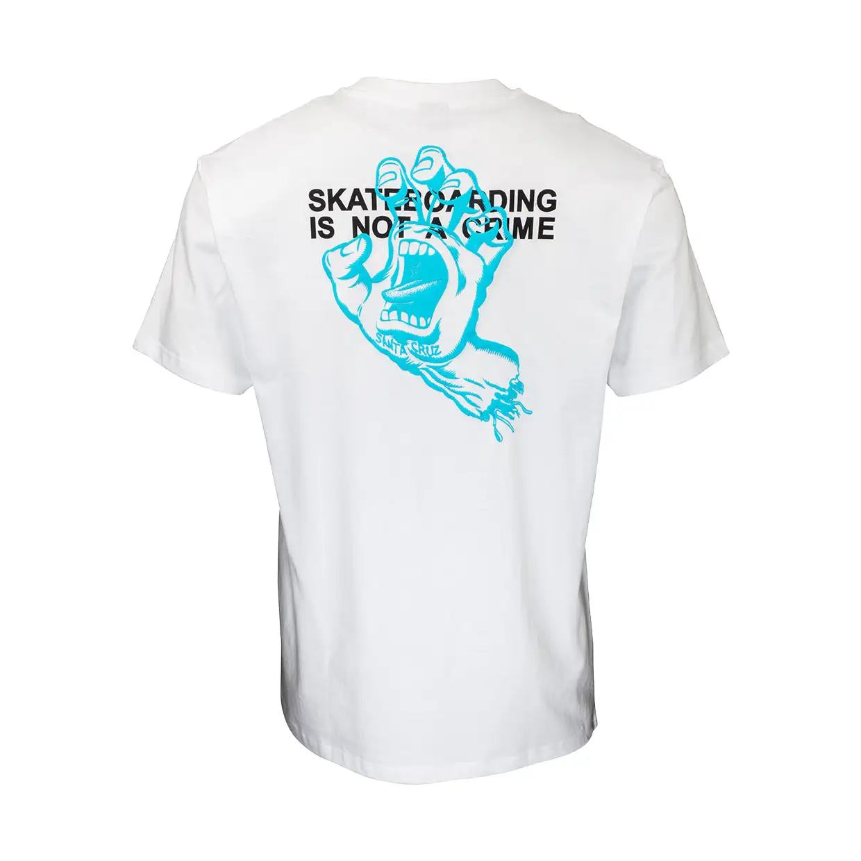 T-shirt Santa Cruz con dettagli sul logo sia davanti che dietro in rilievo e dietro la scritta “Skateboarding is not a crime“, come dargli torto!