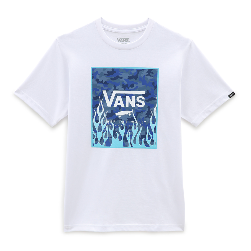 La T-shirt Print Box da bambino dà un tocco in più alla classica grafica del nostro logo con una stampa rsuper cool rettangolare mimetica a fiamme.